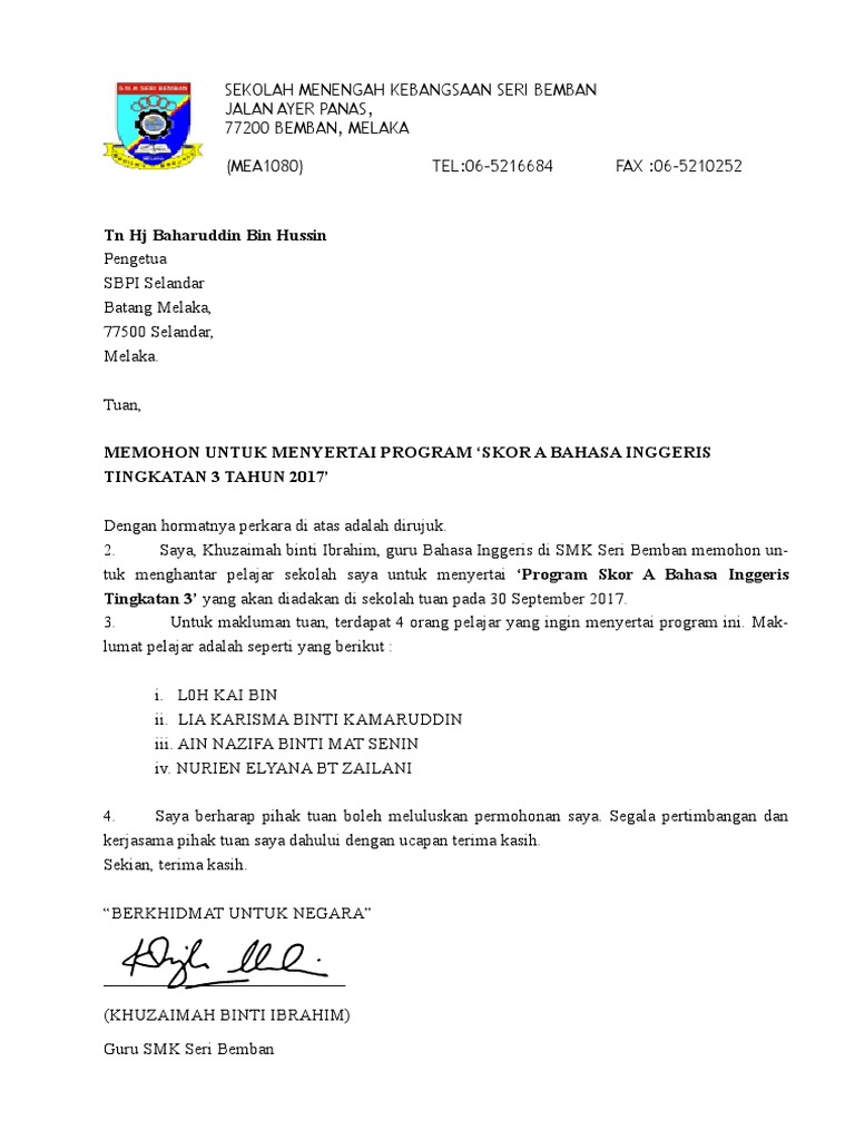 Contoh Surat Permohonan Menyertai Program